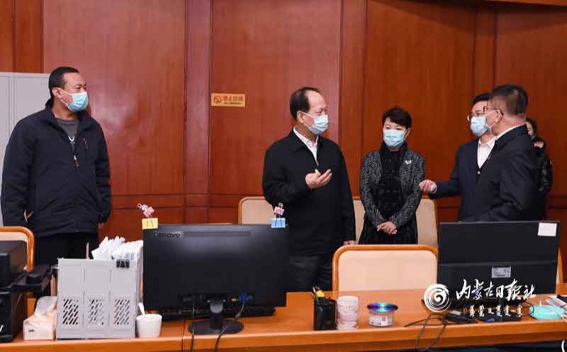 2月17日,自治區(qū)黨委書記、人大常委會主任石泰峰,自治區(qū)黨委副書記、自治區(qū)主席王莉霞來到呼和浩特市疫情防控指揮部調研督導疫情防控工作。內蒙古日報社融媒體記者 袁永紅 攝