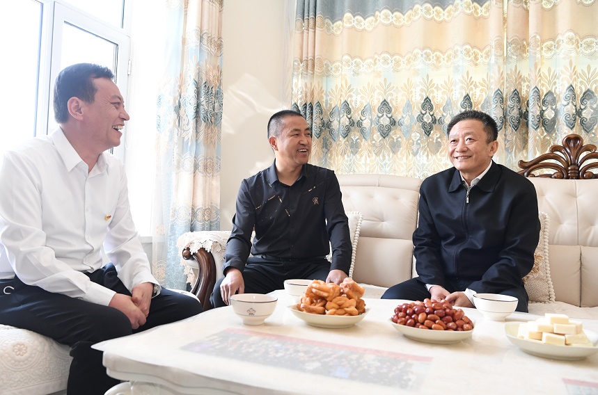 5月17日,自治區(qū)黨委書記孫紹騁走進(jìn)額肯呼都格嘎查致富帶頭人徐兵賢家中,察看生活條件,與他們算起收支賬。內(nèi)蒙古日?qǐng)?bào)社融媒體記者袁永紅攝
