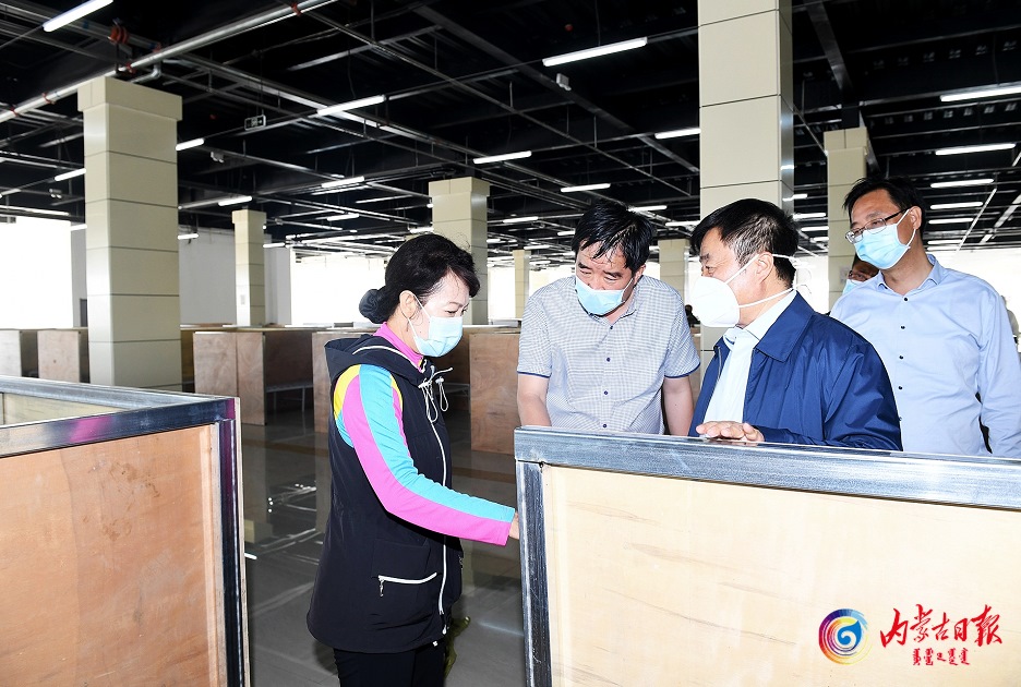 6月7日,王莉霞在二連浩特市新建方艙醫(yī)院調(diào)研。內(nèi)蒙古日報(bào)社融媒體記者韓卿立攝