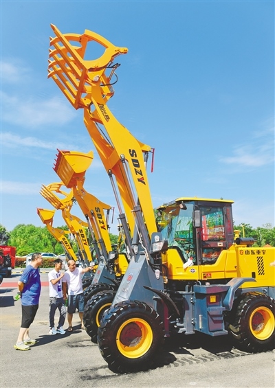 8月13日,在第三十屆內(nèi)蒙古國(guó)際農(nóng)業(yè)博覽會(huì)上,工作人員向觀眾介紹農(nóng)機(jī)產(chǎn)品。記者 王磊 攝