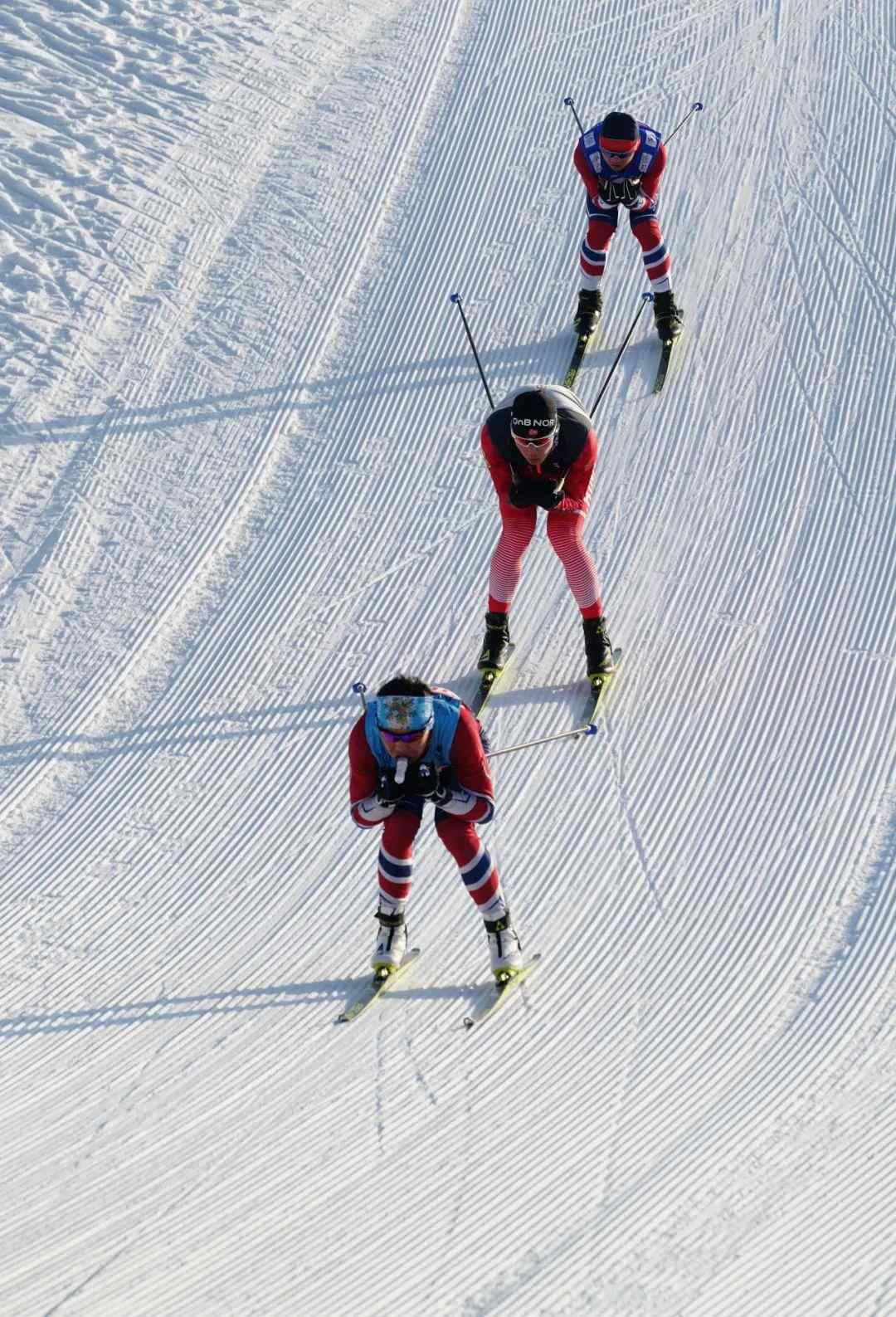 自2023年12月23日起,位于涼城縣的內(nèi)蒙古岱海國際滑雪場,迎來2023至2024賽季全國越野滑雪錦標賽暨第十四屆全國冬季運動會越野滑雪資格賽相關(guān)比賽。賽場上,選手們?nèi)缧性屏魉愀_、跳躍,現(xiàn)場十分驚險刺激。