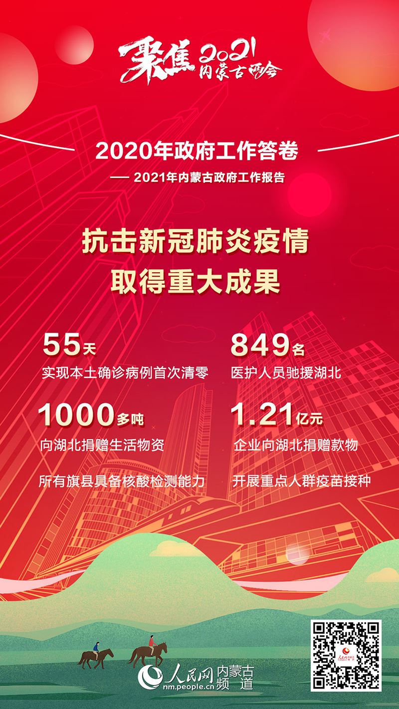 1月26日上午,內(nèi)蒙古自治區(qū)十三屆人大四次會議在內(nèi)蒙古人民會堂開幕。自治區(qū)主席布小林作政府工作報告。2020年是極不平凡的一年,內(nèi)蒙古緊扣全面建成小康社會目標(biāo)任務(wù),堅持穩(wěn)中求進工作總基調(diào),堅持以人民為中心,科學(xué)統(tǒng)籌疫情防控和經(jīng)濟社會發(fā)展,扎實做好“六穩(wěn)”工作,全面落實“六?!比蝿?wù),全區(qū)經(jīng)濟持續(xù)回穩(wěn),社會大局和諧穩(wěn)定,“十三五”規(guī)劃順利收官。2020年政府工作有哪些亮點?看內(nèi)蒙古書寫這份精彩答卷!
