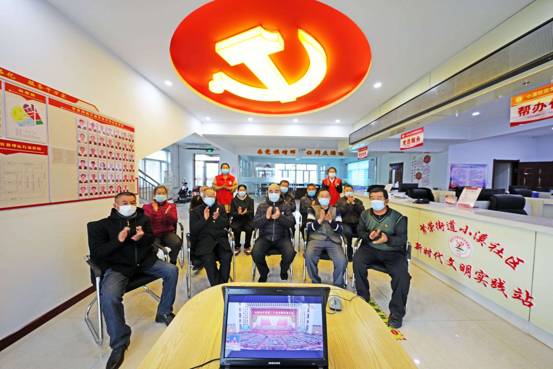 社區(qū)黨員在扎蘭屯市繁榮街道小溪社區(qū)收看黨的二十大開幕盛況。韓冷攝
