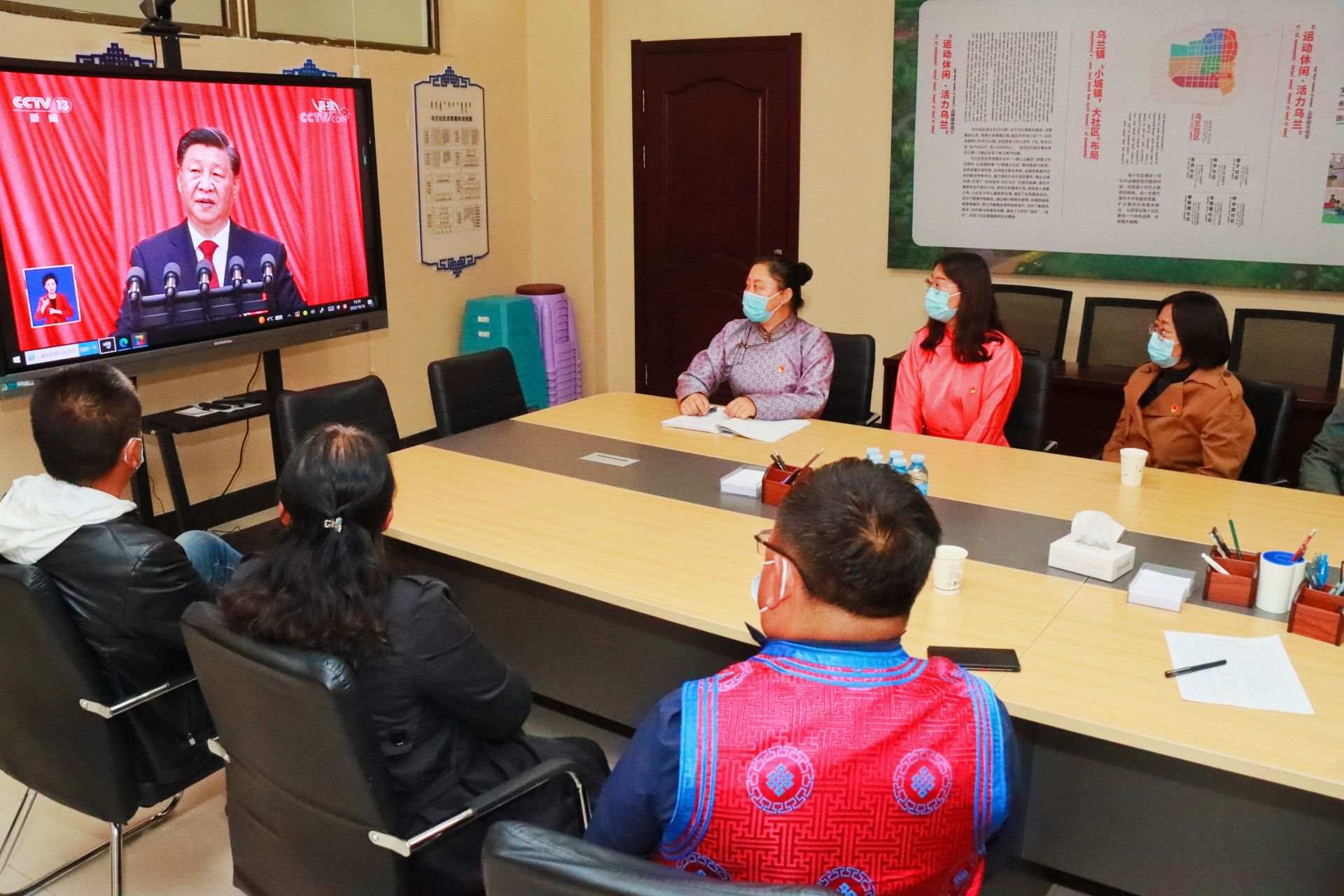 在內(nèi)蒙古,從黨政機(jī)關(guān)到園區(qū)企業(yè),從社區(qū)到學(xué)校......各地干部群眾或聚集在電視前,或通過電腦、手機(jī)等多種方式,認(rèn)真收聽收看了黨的二十大開幕會(huì)。(內(nèi)蒙古日?qǐng)?bào)社融媒體記者 白雪)