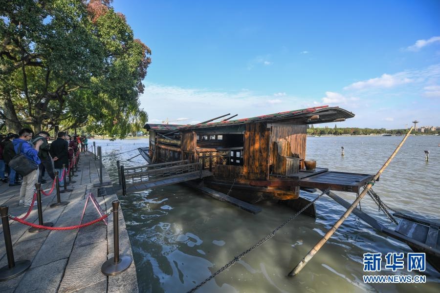 停靠在嘉興南湖湖心島的南湖紅船(2020年10月27日攝)。新華社記者 徐昱 攝