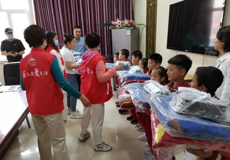 活動當天,人們來到阿拉善左旗蒙古族實驗小學,為烏日力格等10位貧困蒙古族學生送去學生用品及衣物,雙方支部還為學校捐贈無限極植雅洗手液兩箱。