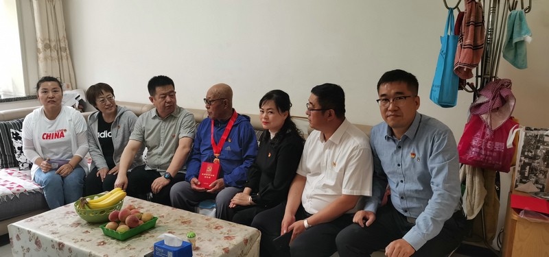當天下午,各黨組織代表共同來到阿左旗額魯特街道黨工委所屬社區(qū),入戶慰問了3名老黨員與1名貧困戶,為他們送去了生活物資,還為90歲高齡老黨員常根禎及86歲老黨員張世云佩戴了“光榮在黨五十年”榮譽勛章。幾位老黨員非常感動,給大家講起了自己當年的故事。