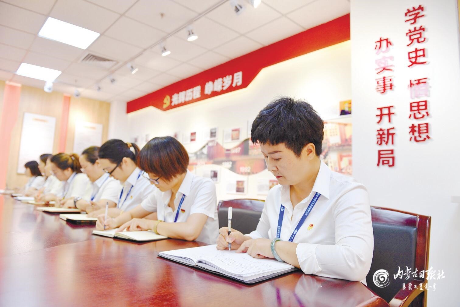 中國二冶集團城建分公司職工在學習黨史。黨史學習教育開展以來,該公司結合施工生產建設實際,以形式多樣、內容豐富的學習和實踐活動,推動黨史學習教育取得實效。(內蒙古日報記者 孟和朝魯 攝)