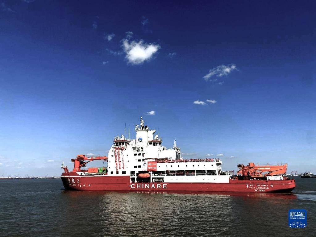 2020年11月10日,中國第37次南極科學(xué)考察隊乘坐“雪龍2”號極地科考破冰船從上海起航,奔赴南極執(zhí)行科學(xué)考察任務(wù),這是“雪龍2”號極地科考破冰船駛離碼頭。新華社發(fā)(中國極地研究中心供圖)