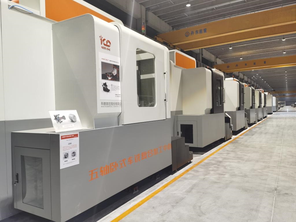 在大連光洋科技集團(tuán)25萬(wàn)平方米恒溫恒濕地藏式生產(chǎn)車(chē)間,一臺(tái)臺(tái)“大塊頭”高端機(jī)床整齊排列,其中,一臺(tái)5米多高的高端五軸臥式車(chē)銑復(fù)合加工中心,十分引人注目。