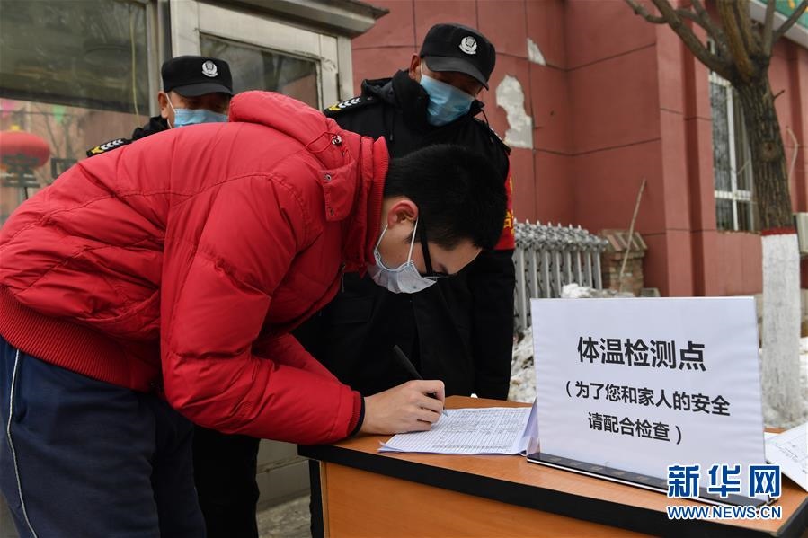 1月29日,內(nèi)蒙古自治區(qū)呼和浩特市賽罕區(qū)正泰家園小區(qū)的工作人員對進(jìn)入人員進(jìn)行登記。 -