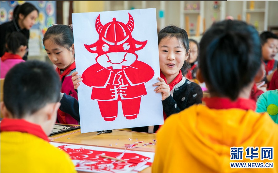 元旦臨近,內(nèi)蒙古自治區(qū)呼和浩特市玉泉區(qū)恒昌店巷小學(xué)開展“傳統(tǒng)文化迎新年”主題活動。同學(xué)們在老師指導(dǎo)下,制作以生肖“牛”為主題的剪紙、書法、面塑作品,在傳承傳統(tǒng)文化中表達(dá)對新年的美好期望。