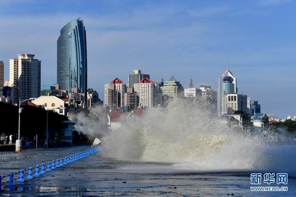 7月25日在山東省青島市澳門(mén)路海邊拍攝的巨浪。 受今年第6號(hào)臺(tái)風(fēng)“煙花”影響,山東省青島市風(fēng)力逐漸加大,沿海出現(xiàn)巨浪。新華社發(fā)(王海濱 攝) -
